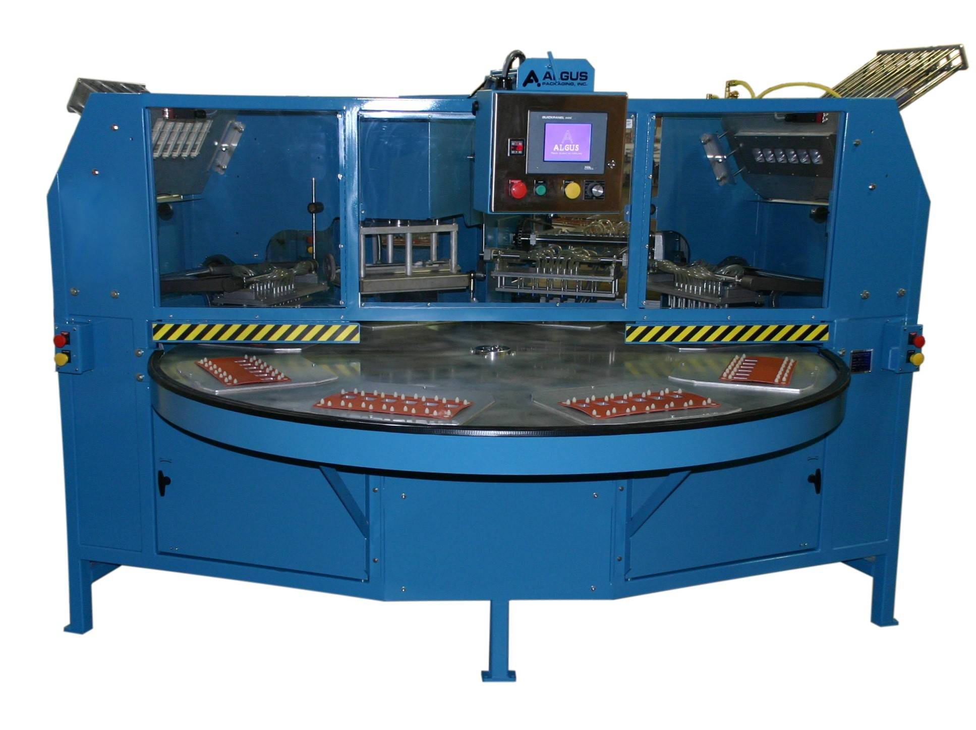 The Algus 8SR and 8SR OS comes with a choice of three automatic eject system options: Packages are lifted from the nesting trays and either: