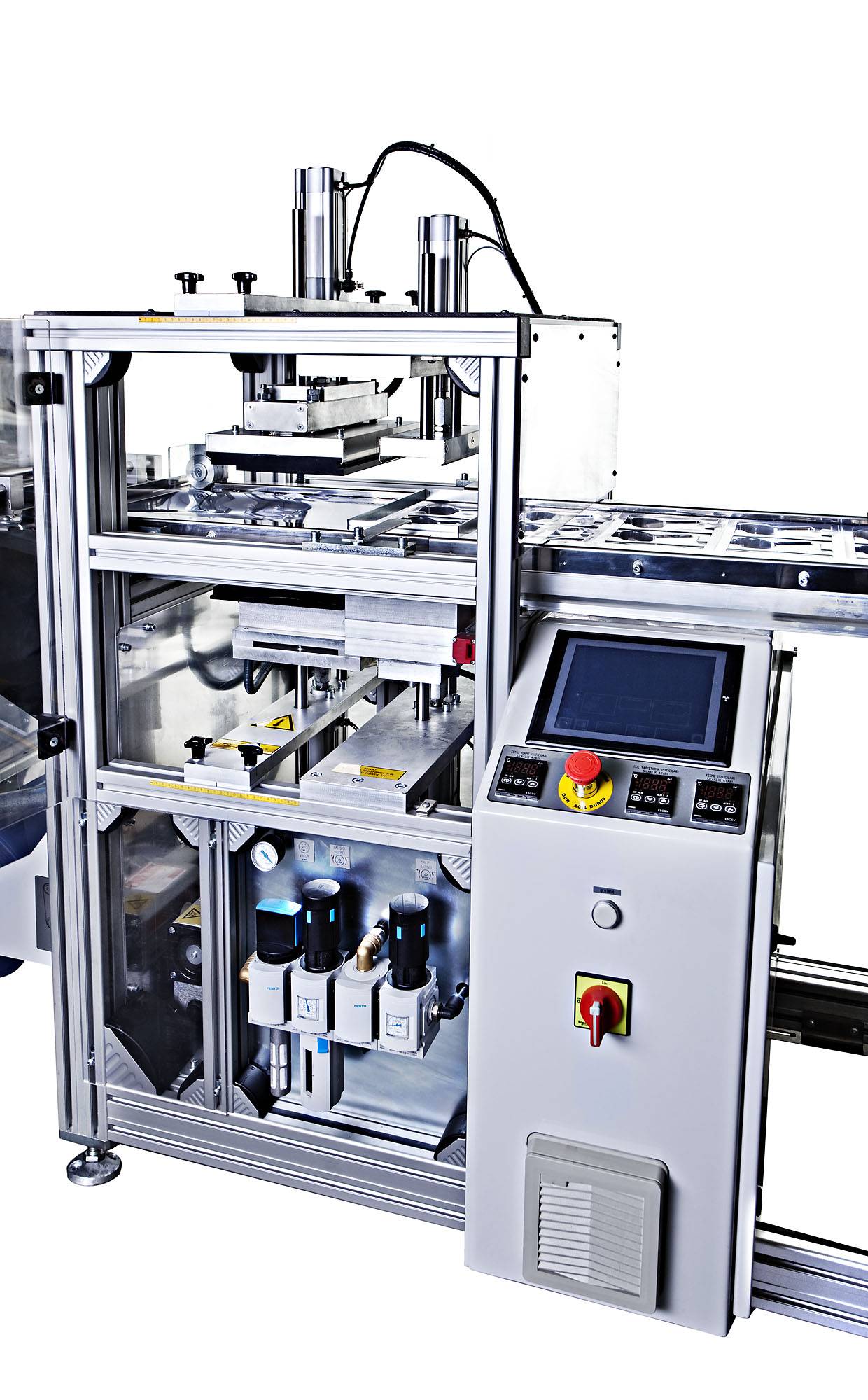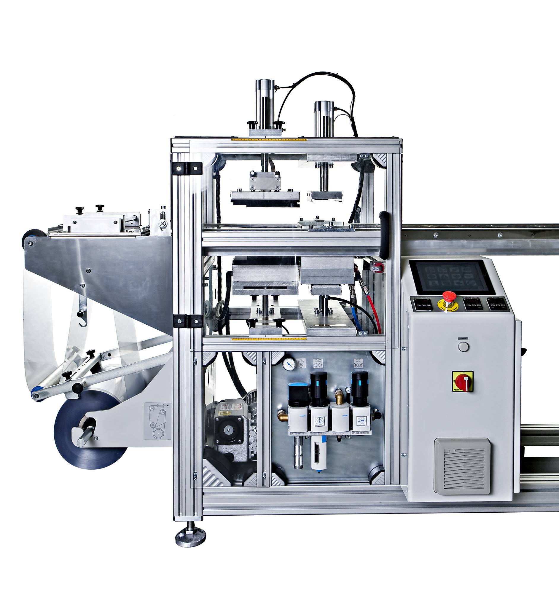 All relevant operational parameters are controlled via a touch-screen and saved inside the built-in PLC.