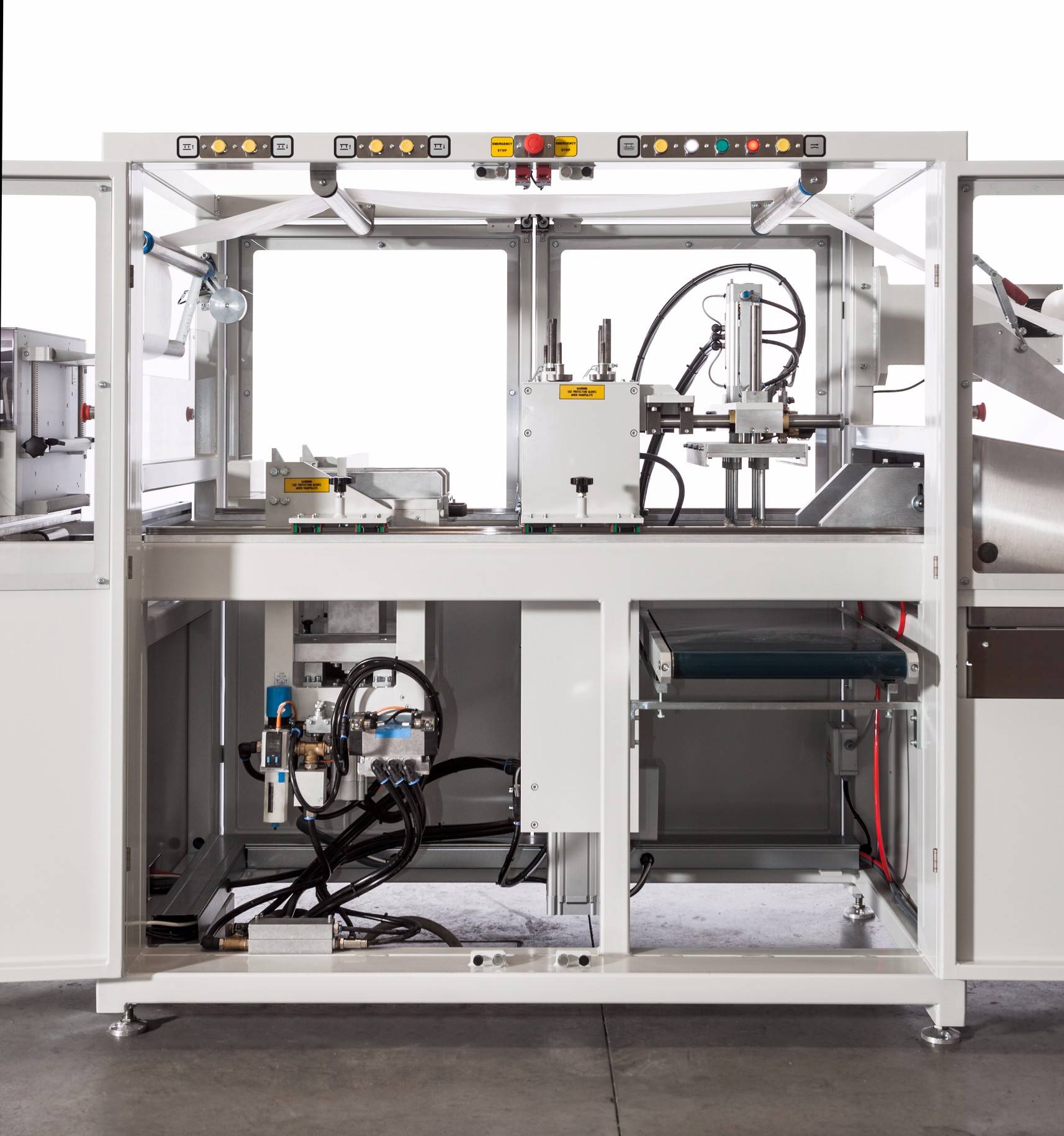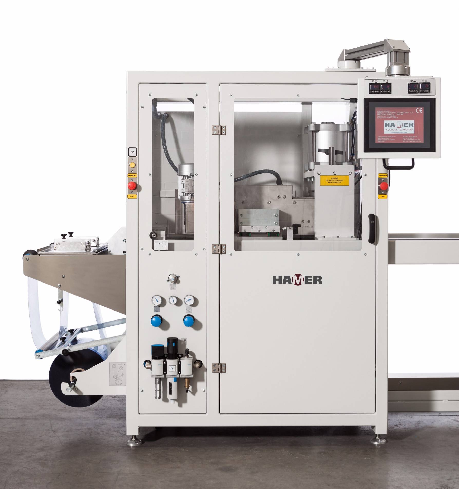 The sealing press is provided with a pressure switch that reads the pressure applied and triggers an alarm in case sealing pressure differs from the preset value.