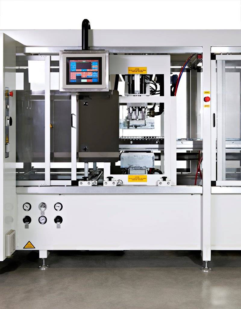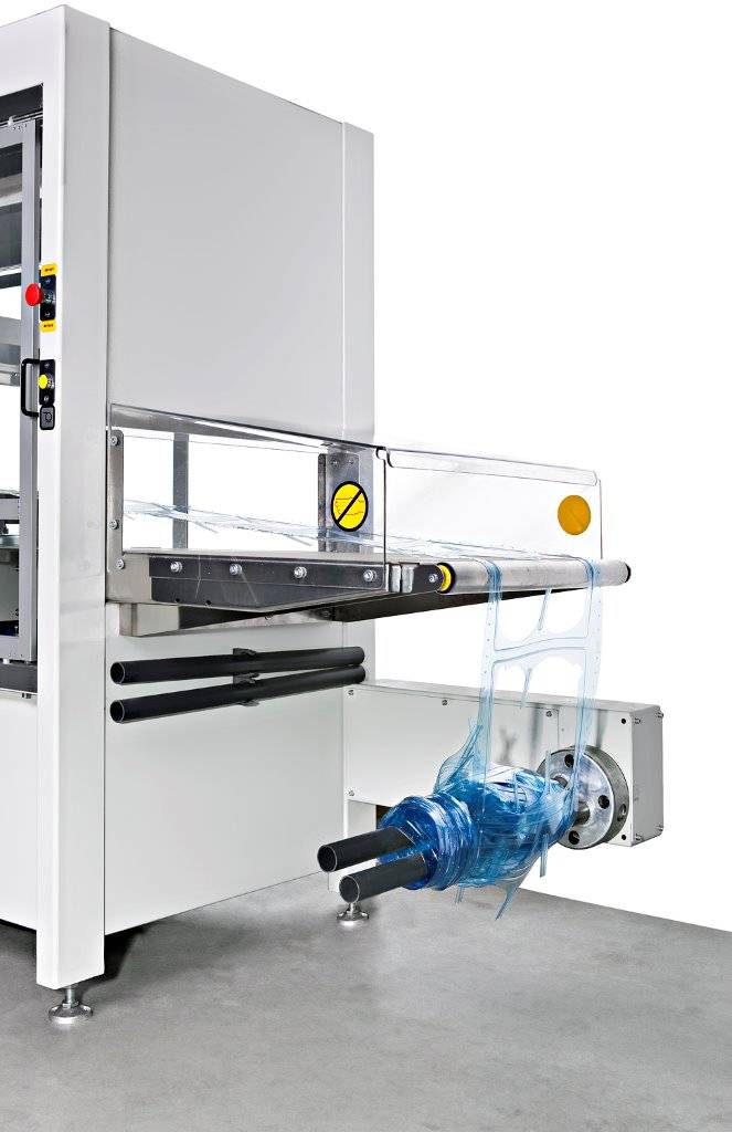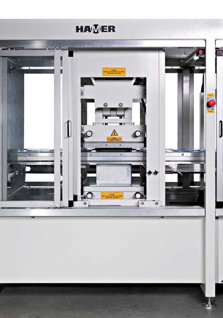 - Motorized positioning of steel-rule trimming press according to index length.